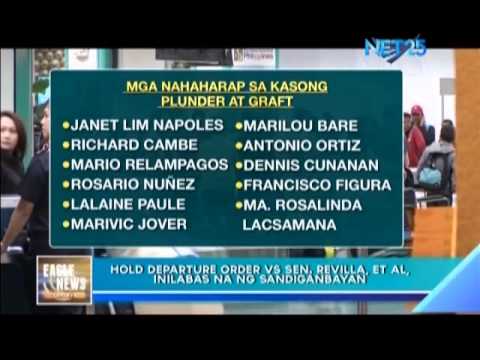 The 1st division of the Sandiganbayan issued a hold-departure order against Senator Ramon Revilla and his eleven co-accused in the pork barrel scam.