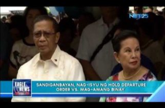 QUEZON City, Philippines (Eagle News) — Nag-labas ng hold departure order ang Sandiganbayan Third Division laban kina dating Vice President Jejomar Binay Sr., at anak niyang si Dating Makati City Mayor Jejomar Sherwin Binay Jr. Ang HDO ay may kaugnayan sa kasong graft, malversation at falsification laban sa mag-amang binay at iba pang akusado ukol sa pagtatayo ng Makati City Hall Parking Building. Ayon sa abugado ng dating Vice President, ealang epekto ang HDO sa […]