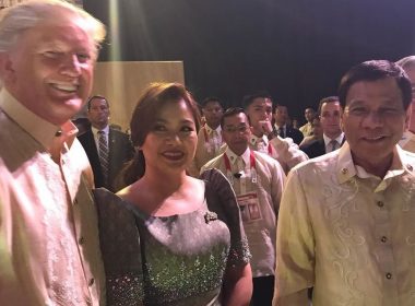 This photo shared by Presidential Spokesperson Harry Roque in his Twitter account shows President Rodrigo Duterte with his common-law wife Honeylet Avanceña and US President Donald Trump during the Association of Southeast Asian Nations gala dinner.