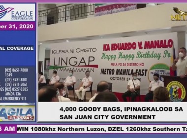 (Eagle News) — Almost 5,000 goodwill bags were turned over to the San Juan City local governnment by the Iglesia Ni Cristo (Church Of Christ) for its Oct. 31 Lingap sa Mamamayan. The INC goodwill bags were turned over at the city hall on Saturday morning. San Juan City mayor Francis Zamora received the goodwill bags from representatives of the Church, and thanked INC Executive Minister Brother Eduardo V. Manalo for the help extended by […]