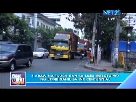 The Land Transportation Franchising and Regulatory Board will implement a three-day truck ban at the NLEX. The said truck ban will start on June 26. The said truck ban is due to the Iglesia ni Cristo centennial celebration at Bocaue, Bulacan.