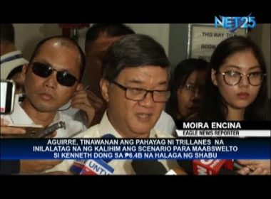 QUEZON City, Philippines (Eagle News) — Justice Secretary Vitaliano Aguirre laughed off the allegation of Senator Antonio Trillanes that he is laying down the scenario that will absolve controversial trader Kenneth Dong from charges involving the entry of Php 6.4 billion worth of illegal drugs from China. Trillanes on Thursday, August 17 said, “Secretary Aguirre is setting the stage to absolve Paolo Duterte’s good friend/partner, Kenneth Dong, in this P6-billion shabu controversy.” Aguirre’s response to […]