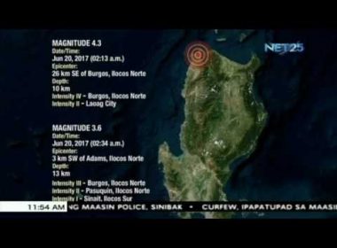(Eagle News) — Three consecutive minor quakes were felt in Ilocos Norte on Tuesday dawn, June 19. The strongest of the three was a magnitude 4.3 quake that was recorded at 2:13 AM and was tectonic in origin, according to data from the Philippine Institute of Volcanology and Seismology. The quake’s epicenter, located 10 kilometers east of Burgos, Ilocos Norte, was 26 kilometers deep. It was was felt at intensity 2 in Laog City, and […]