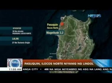 PASUQUIN, Ilocos Norte (Eagle News) – A 3.2-magnitude earthquake jolted the town of Pasuquin, Ilocos Norte on Wednesday. The quake was recorded at 9:43 a.m., 32 kilometers north of Pasuquin. According to the Philippine Institute of Volcanology and Seismology, the earthquake has a depth of 27 kilometers and is of tectonic origin. There were no expected aftershocks. https://youtu.be/RMbilqPFosI