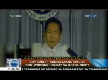 (Eagle News) – Malacanang has declared Monday, September 11, 2017, the 100th birthday of the late President Ferdinand Marcos, as a special non-working holiday in Ilocos Norte so the province can celebrate the birth anniversary of its favorite son. “The Ilocano community has been annually celebrating the birthdate of the late Ferdinand E. Marcos and commemorating his life and contributions to national development as a World War II veteran, distinguished legislator and former president,” […]