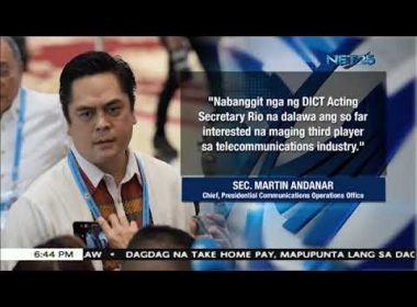 MANILA, Philippines (Eagle News) — Naragdagan pa ang international telecommunications company na nagnanais na maging third player na nakahandang mamuhunan sa Pilipinas sa larangan ng komunikasyon. Sinabi ni Presidential Communications Secretary Martin Andanar na iniulat ni Department of Information and Communications Technology (DICT) officer-in-charge Eliseo Mijares Rio Jr. kay Pangulong Rodrigo Duterte ang interes ng PT&T company na makilahok sa pagpapaganda ng telecommunication services sa bansa. Unang lumutang ang China Telecom na nakahandang maglagak ng […]
