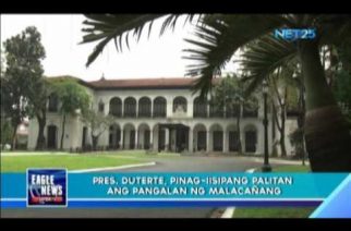 QUEZON City, Philippines – President Rodrigo Duterte is entertaining the idea of renaming the Malacañang Palace into the People’s Palace. According to President Duterte, the word “Malacañang” has imperialist undertones. President Duterte also wants to open the Palace to the public. (Eagle News Service Described Jay Paul Carlos, Video Editing by Jericho Morales, Uploaded by Vince Alvin Villarin)