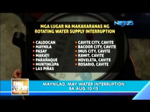 METRO Manila, Philippines, August 5 (Eagle News) — The consumers serviced by Maynilad will experience a four-day rotating water interruption due to the re-aligning of water pipes in Tondo, Manila to make way for the government’s flood re-routing project. To see the areas that will be affected by the water interruption, please watch the attached video. (Eagle News Service Jay Paul Carlos, Jericho Morales, MRFaith Bonalos)