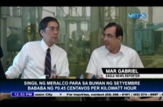QUEZON City, Philippines (Eagle News) — Meralco announced that it will lower its charge by 45 centavos per kilowatt hour this September. This is due to the lower transmission charges which is lower than 10 centavos per kilowatt hour. https://youtu.be/F8ViMXNfN5I