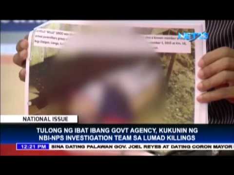The joint group of the National Prosecution Service (NPS) and the National Bureau of Investigation (NBI) will ask for the cooperation and aid of different government agencies in order to resolve the issue of Lumad killings. (Eagle News Service Jay Paul Carlos, Dexter Magno, MRFaith Bonalos) https://youtu.be/ZmRh0E61eWY