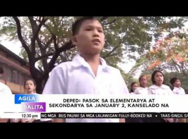(Eagle News)—-There will be no classes in public schools in the country on Jan. 2. The Department of Education made the announcement in a memorandum dated Dec. 19. According to Education Secretary Leonor Briones, the suspension of classes in all public elementary and high schools was in line with Memorandum Circular No. 54 issued by Malacanang suspending work in executive offices on the same day. She said the suspension of classes in private schools was […]