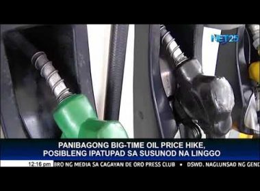 (Eagle News) — Posible na namang magpatupad ang oil price hike ngayong linggo ang mga kumpaniya ng langis. Ayon sa energy sources, maaaring maglaro sa 25 (P0.25) hanggang 35 centavos (P0.30) kada litro ang pagtaas sa presyo ng diesel, habang 20 (P0.20) hanggang 30 centavos (P0.30) kada litro sa gasolina. Ang kerosene naman ay aabot sa P0.40 hanggang P0.50 kada litro ang taas-presyo. Ang taas-presyo ng petroleum product ay bunsod ng paggalaw ng presyo sa […]