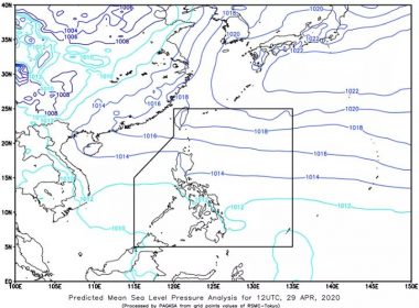 (Eagle News) — Cloudy skies with rainshowers and isolated thunderstorms are expected in Palawan today as the Intertropical Convergence Zone affects the same, Visayas and Mindanao. The Philippine Atmospheric Geophysical and Astronomical Services Administration said Metro Manila and the rest of the country, on the other hand, will have partly cloudy to cloudy skies with isolated rainshowers due to the easterlies or localized thunderstorms. The ridge of a High Pressure Area (HPA) is also extending […]