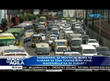 (Eagle News) — Sa darating na Agosto 1, ipatutupad na ng Metropolitan Manila Development Authority (MMDA) ang bagong traffic scheme policy nito kung saan ipagbabawal na ang mga provincial bus sa EDSA simula Cubao hanggang Pasay tuwing rush hour. Ito ay upang maibsan ang bigat ng daloy ng trapiko sa kahabaan ng EDSA at bigyang-daan ang mga ongoing construction. Kaya bawal na tumawid ng EDSA ang mga provincial bus sa mga oras na 7 a.m.-10 […]
