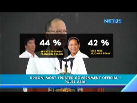 In the latest survey conducted by Pulse Asia, President Benigno Aquino III is no longer the most trusted government official in the country, with Senate President Franklin Drilon taking the first place.