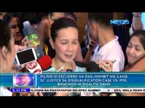 MANILA, Philippines – In response to the statement made by Senator Francis Escudero regarding the inhibition of Supreme Court Justices regarding the disqualification case filed by Rizalito David, said complainant alleged that Senator Poe’s camp is only making delaying actions to ensure that the name of Senator Grace Poe will be included in the ballot form. (Eagle News Service Described by Jay Paul Carlos, Video Editing and Uploaded by Vince Alvin Villarin)