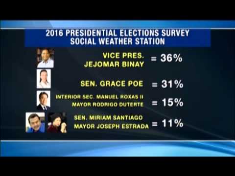 MANILA, Philippines (Eagle News) – According to the latest surveys conducted by the Ibon Foundation, Vice President Jejomar Binay and Senator Grace Poe are neck-to-neck as top presidential candidates for 2016. (Eagle News Service Jay Paul Carlos, Dexter Magno, Vince Alvin Villarin)