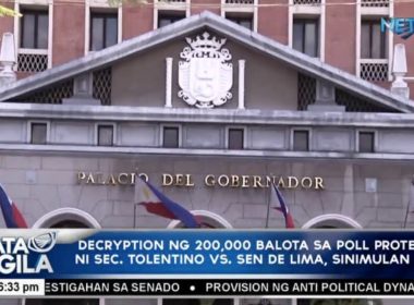 QUEZON CITY, Philippines (Eagle News) — Sinimulan na ng Commission on Elections (COMELEC) ang decryption ng ballot images kaugnay sa election protest na isinampa ni Presidential Adviser for Political Affairs Francis Tolentino laban kay Senadora Leila De Lima. Sinabi ng COMELEC na mahigit isang libong balota mula sa clustered precincts ng Akbar at Al Barka, Basilan ang naunang ma-decrypt. Una nang kinuwestyon ni Tolentino ang mahigit dalawang daang libong balota mula sa 597 clustered precincts […]