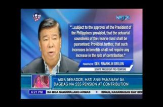 MANILA, Philippines (Eagle News) — Tutol ang mga Senador sa desisyon ng Social Security System na itaas ng dalawang libong piso (Php 2,000) ang buwanang pensiyon ng mga retiradong miyembro kung saan ang pondo ay kukunin sa dagdag kontribusyon ng mga aktibong miyembro. Ayon kay Senate President Pro Tempore Franklin Drilon, bagamat maganda ang layon ng hakbang na tulungan ang mga retirado, lalabag aniya ito sa batas. Sa ilalim ng Section 4 ng Republic Act […]