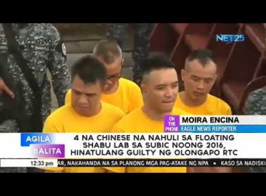 (Eagle News) — Four Hong Kong nationals were found guilty for illegal drug possession for a 2016 drug case in Subic Bay and were sentenced to life imprisonment. The Olongapo City Regional Trial Court (RTC) Branch 74 found the accused Win Fai Lo, Shu Fook Leung, Kam Wah Kwok and Kwok Tung Chan guilty on the charge of possession of illegal drugs. They were apprehended in July 2016 by the Philippine National Police Anti-Illegal […]