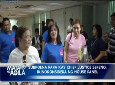 MANILA, Philippines (Eagle News) — Upang mapilitan umanong dumalo sa impeachment proceeding, ikinukunsidera na ng House Committee on Justice ang pagpapa-subpoena kay Supreme Court Chief Justice Maria Lourdes Sereno. Ayon kay Oriental Mindoro Representative Reynaldo Umali, chairman ng komite, isa sa kanilang option ang pagpapa-subpoena sa punong mahistrado bilang bahagi ng kanilang mandato at bilang isang constitutional officer ay dapat aniyang sundin ito ni Sereno. Dagdag pa ni Umali, ang pag-iisyu ng subpoena ay isa […]