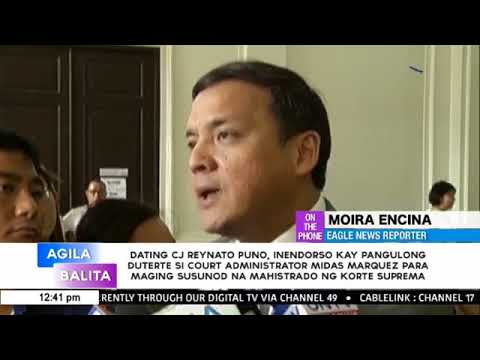 (Eagle News) -- Former Chief Justice Reynato Puno endorsed Court Administrator Jose Midas Marquez to President Rodrigo Duterte for the…