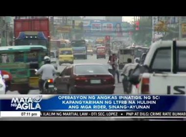 (Eagle News) — The Supreme Court has temporarily blocked a local court’s order preventing the government from interfering in Angkas’ operations. The High Court’s second division issued the temporary restraining order on Mandaluyong Regional Trial Court Branch 213 Judge Carlos Valenzuela’s Aug. 18 order as it resolves the petition for certiorari filed by the Land Transportation Franchising and Regulatory Board and the Department of Transportation before it. In the Aug. 20 order, Valenzuela also stopped the […]
