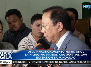 (Eagle News) — Pitong araw ang ibinigay ng Supreme Court sa Office of the Solicitor General upang isumite ang kanilang komento sa hiling na temporary restraining order ng Makabayan Bloc sa Korte Suprema noong Enero 4 sa pangungunguna ni Albay Rep. Edcel Lagman sa martilal law extention sa Mindanao. Paliwanag ni Supreme Court Spokesperson Midas Marquez, SolGen ang magbibigay ng komento sa petition ng mga kongresistang tutol sa martila law extention sa Mindanao dahil ang […]