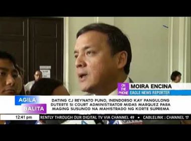 (Eagle News) — Former Chief Justice Reynato Puno endorsed Court Administrator Jose Midas Marquez to President Rodrigo Duterte for the position of associate justice of the Supreme Court. In an endorsement letter dated July 31, Puno said Marquez is “qualified to the highest degree” for the associate justice position that will be vacated by retiring Associate Justice Presbitero Velasco Jr. Marquez has been serving the Highest Court for more than 25 years. He became one […]