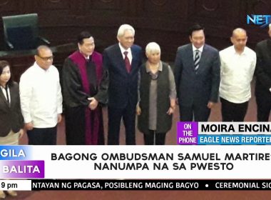 (Eagle News) — Former Supreme Court Associate Justice Samuel Martires on Monday, August 6 took his oath as the new Ombudsman. Martires took his oath before Acting Chief Justice Antonio Carpio at the Supreme Court’s session hall. His wife, and his former colleagues at Supreme Court — justices and court staff — witnessed his oath taking. Martires succeeded Ombudsman Conchita Carpio-Morales who retired last July 26. After his oath taking, Martires said his main priorities […]