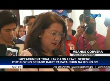 (Eagle News) – Supreme Court Chief Justice Maria Lourdes Sereno said she was within her rights to return to the high court as the chief magistrate, but will inhibit from the proceedings on quo warranto filed against her “out of delicadeza,” according to a statement issued by her camp. Sereno’s spokesperson for the impeachment hearings, Atty. Carlo Cruz said that Sereno had already finished preparations for the expected impeachment trial at the Senate and […]