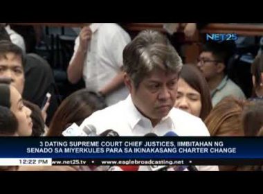 QUEZON CITY, Philippines (Eagle News) — The Senate Committee on Constitutional Amendments is inviting framers of the 1987 Constitution, including three former Justices of the Supreme Court, to study the proposed charter change. The three former Justices invited are former Chief Justices Reynato Puno, Hilario Davide Jr., and Artemio Panganiban. The Senate also invited members of the academe as well as those from different sectors of the society. https://youtu.be/aq3CicMuvvs