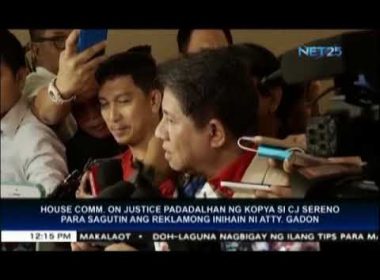 QUEZON City, Philippines (Eagle News) — Supreme Court Chief Justice Ma. Lourdes Sereno will be given a copy of the verified impeachment complaint filed by Atty. Larry Gadon so she can answer this. House Commitee on Justice chair, Rep. Reynaldo Umali, said only after this will the House of Representatives be able to proceed with the impeachment process. The committee on Wednesday, September 13, found that Galdon’s complaint against Sereno was sufficient in form and […]