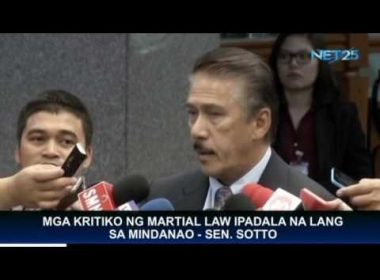 (Eagle News) — Makabubuting ipadala na lamang sa Marawi City ang lahat ng mga kritiko ng idineklarang batas militar ni Pangulong Rodrigo Duterte sa Mindanao. “Padala na lang lahat ng kontra sa Marawi. Sila tumapos ng gulo,” ito ang naging pahayag ni Senate Majority Leader Tito Sotto kasunod ng isinagawang oral arguments ng Korte Suprema kung saan iginigiit ng mga petitioner na walang sapat na batayan ang pagpapatupad ng martial law. Ayon kay Sotto, tila […]