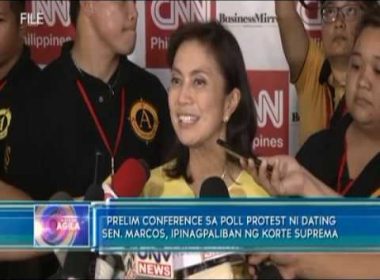 (Eagle News) — Ipinagpaliban ng Korte Suprema ang nakatakdang preliminary conference sa electoral protest ni dating senador Ferdinand “Bong –Bong” Marcos kaugnay sa sinasabing dayaan sa nakaraang halalan kung saan tumakbo itong pangalawang pangulo ng bansa. Sa halip na sa a-bente uno ng buwan (June 21), sa a-onse na ng Hulyo (July 11) isasagawa ang preliminary conference para talakayin ang sakop sa electoral protest ng dating senador laban kay Vice President Leni Robredo na lumamang […]