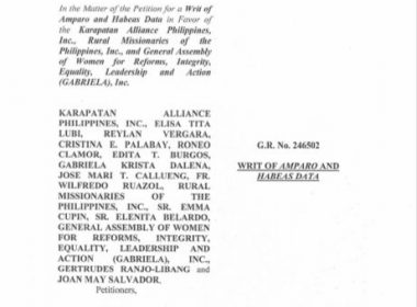 (Eagle News)–The Supreme Court has issued a writ of amparo (protection) and habeas data in favor of Karapatan, Gabriela and the Rural Missionaries of the Philippines. This was after the SC deemed the issuance of the writ “necessary” and “proper” on its face considering the “allegations contained, the issues raised, and the arguments adduced” in the groups’ petition against President Rodrigo Duterte, Defense Secretary Delfin Lorenzana, National Security Adviser Hermogenes Esperon, Presidential Spokesperson Salvador Panelo, […]