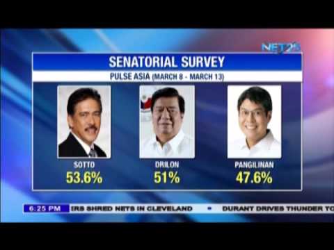 MANILA, Philippines – In the latest senatorial survey conducted by Pulse Asia, Senator Tito Sotto took the first place with 53.6% (Eagle News Service Described by Jay Paul Carlos, Video Editing and Uploaded by Vince Alvin Villarin)