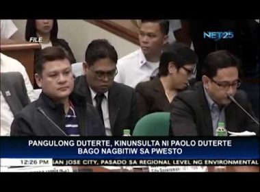 (Eagle News) — Pinuri ng ilang senador ang ginawang pagbibitiw ni Davao City Vice Mayor Paolo Duterte. Para kay Senate Majority Leader Tito Sotto, karespe-respeto ang ginawa ng bise alkalde at pagpapakita na hindi siya kapit tuko sa pwesto. Dagdag pa ni Sotto, naniniwala din ang batang Duterte sa salitang “delicadeza.” Gayundin ang paniniwala ni Senador JV Ejercito. Aniya, katapangan ang ginawa ng vice mayor sa pagbibitiw. Ito aniya ay upang hindi na niya maidamay […]