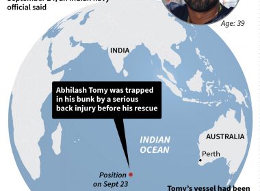 NEW DELHI, India (AFP) — A solo Indian yachtsman trapped in his bunk by a serious back injury thousands of kilometers (miles) from land was rescued Monday, an Indian navy official said. Abhilash Tomy, a competitor in the Golden Globe round-the-world race, was badly injured when his vessel was damaged in a storm on Friday 3,500 kilometers (2,200 miles) from western Australia. Race organizers said the 39-year-old Indian navy commander had been “incapacitated on his […]