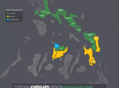 (Eagle News)–Several transmission lines are down due to “Ursula.” According to the National Grid Corporation of the Philippines, the following lines are unavailable: VISAYAS Nabas-Culasi 69kV Line Customer affected: ANTECO Date/time out: 26 December 2019 / 2:21PM Nabas-Sapian 69kV Line Customer affected: AKELCO Date/time out: 25 December 2019 / 5:47AM Nabas-Caticlan 69kV Line Customer affected: AKELCO Date/time out: 25 December 2019 / 7:56AM Borongan-Quinapondan 69kV Line Customer affected: ESAMELCO Date/time out: 24 December 2019 / […]