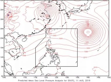 (Eagle News)–Signal No. 1 remains hoisted over Batanes as Typhoon “Hanna” moved slowly over the Philippine Sea on Wednesday, Aug. 7. The Philippine Atmospheric Geophysical and Astronomical Services Administration said as of 10 a.m., the eye of the typhoon was located 630 kilometers east of Basco, packing maximum sustained winds of 130 kph near the center and gustiness of up to 160 kph. “Hanna” is moving north northwest slowly. According to PAGASA, the outer rainbands […]