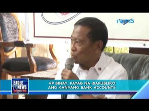 MANILA, Philippines – As he champions the passage of the Freedom of Information bill, Vice President Jejomar Binay said that he agrees with idea of opening his bank account to public scrutiny, adding that the Anti-Money Laundering Council already examined said accounts. (Eagle News Service Described by Jay Paul Carlos, Video Editing by Dexter Magno, Uploaded by MRFaith Bonalos)