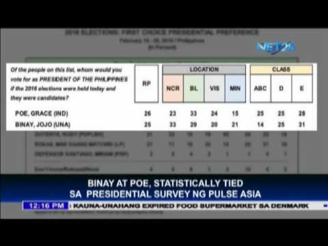 MANILA, Philippines – In the latest presidential survey conducted by Pulse Asia, Vice President Jejomar Binay and Senator Grace Poe were statistically tied in the first place, both gaining 26%. (Eagle News Service Described by Jay Paul Carlos, Video Editing by Jericho Morales, Uploaded by MRFaith Bonalos)