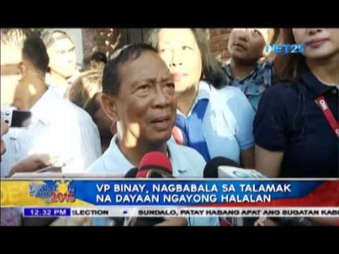 QUEZON City, Philippines – Vice President Jejomar Binay and his son, former Makati City Mayor Junjun Binay voted early in the morning. After voting, VP Binay warned against the alleged widespread cheating this election. Binay added that he saw several signs of cheating. (Eagle News Service Described by Jay Paul Carlos, Video Editing by Jericho Morales, Uploaded by MRFaith Bonalos)