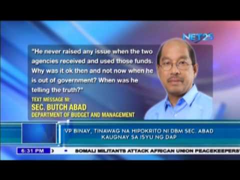 MANILA, Philippines (Eagle News) – Budget Secretary Butch Abad called Vice President Jejomar Binay a “hypocrite” in response to the latter’s criticism on the Development Acceleration Program, adding that VP Binay’s department were included to those who received DAP. (Eagle News Service Jay Paul Carlos, Jericho Morales, Vince Alvin Villarin)