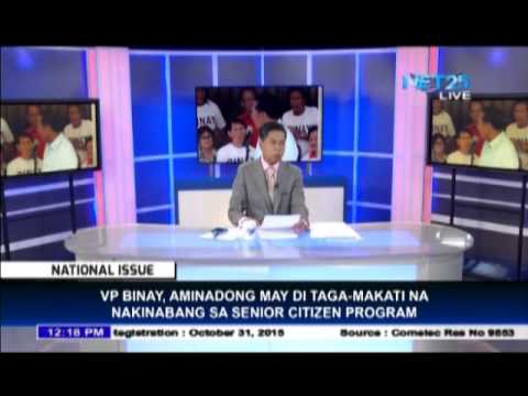 MANILA, Philippines, August 26 (Eagle News) — Vice President Jejomar Binay reacted to the new allegations of anomalies that arose from the continuation of the Senate probe against him, admitting that some of the senior citizen beneficiaries are not residents of Makati City but are able to give their service to said city. (Eagle News Service Jay Paul Carlos, Jericho Morales, MRFaith Bonalos)