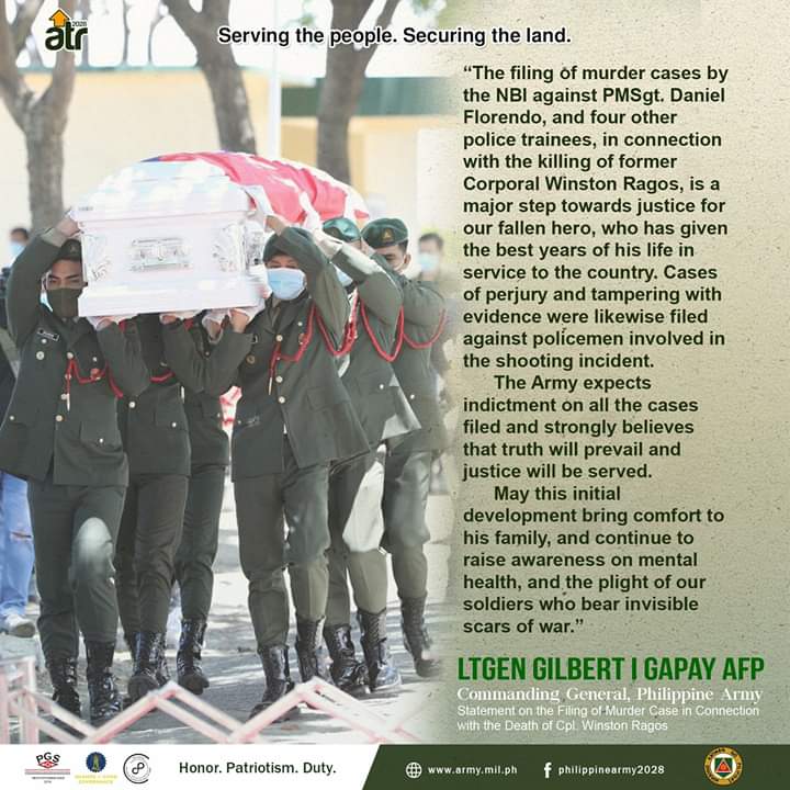 PHL Army welcomes raps vs cop, four police cadets over Ragos death
