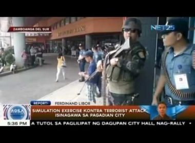 PAGADIAN CITY, Zamboanga del Sur (Eagle News) – Isang simulation exercise ang isinagawa sa Pagadian City kaugnay sa posibilidad ng pag-atake ng terorista. Limang magkasunod na tunog ng sirena ang nagkunwang hudyat na mayroong mga teroristang umatake sa iba’t ibang bahagi ng siyudad. Pagkatapos ng ilang minuto, agad dumating ang mga first responder mula sa Pagadian City Police Station. Sumunod naman ang Zamboanga Del Sur Provincial Office Unit, at tropa ng militar para i-neutralize ang […]