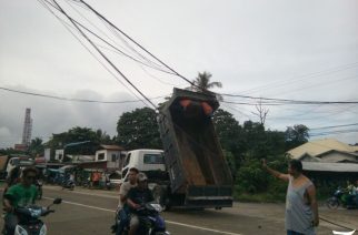 IPIL, Zamboanga Sibugay (Eagle News) – Sumabit sa kawad ng kuryente ang likurang bahagi ng isang dump truck sa Bayan ng Ipil, Zamboanga Sibugay. Nangyari ang naturang insidente nitong Biyernes ng umaga, December 9. Sa imbestigasyon napag-alaman na nagkamali ang driver ng dump truck dahil sa halip na kumambyo ito ay tumaas ang gawing likuran ng nasabing sasakyan kaya sumabit sa kable ng kuryente. Dahil sa pangyayari ay hindi muna pinadaanan ang national highway sa gawing […]