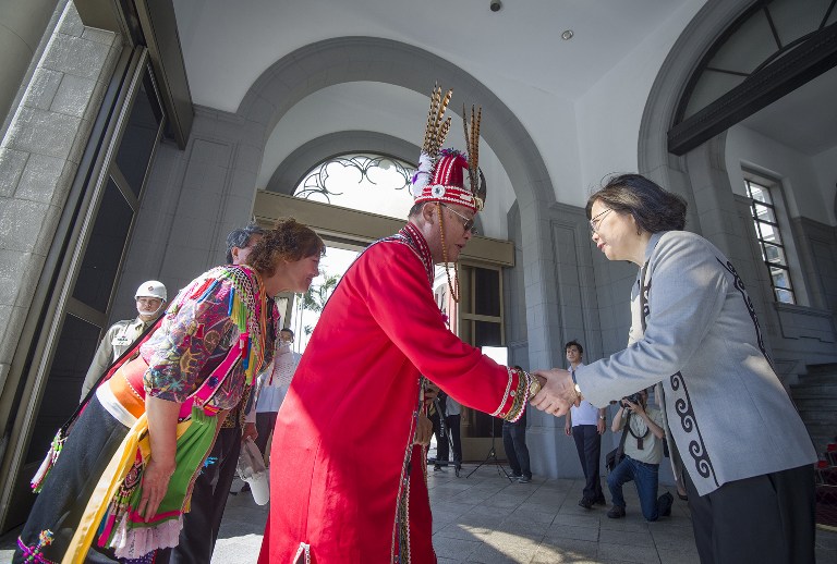 Tsai greeted the representatives from each of the island’s 16 recognised tribes, who were all wearing their traditional tribal clothing.